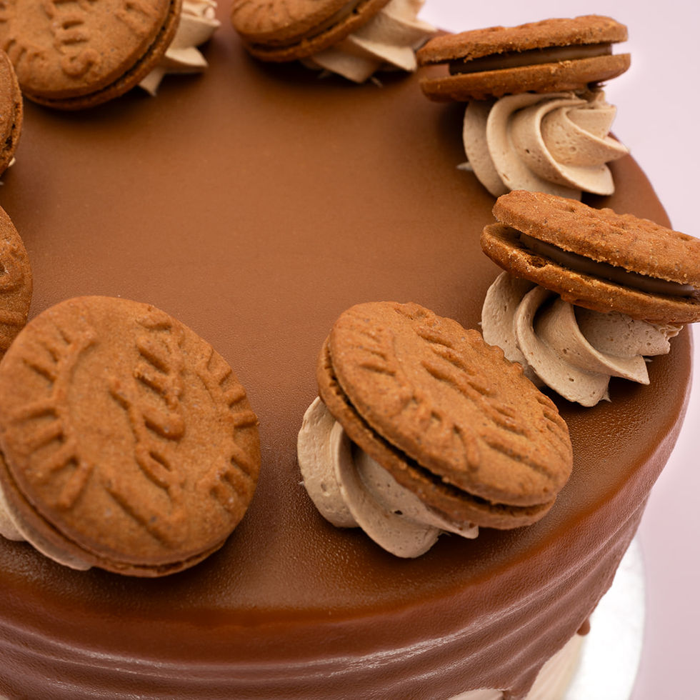 Experience pure, caramelized perfection with our irresistible Lotus Biscoff Cake. This modern classic is a true indulgence for your senses, featuring a moist vanilla sponge infused with the unique, spiced flavour of Lotus Biscoff. The cake is layered and coated in a smooth, velvety buttercream blended with rich Biscoff spread. It's then finished with a cascade of Biscoff crumbs and a delightful drizzle of spread, creating a deliciously crunchy texture in every bite.